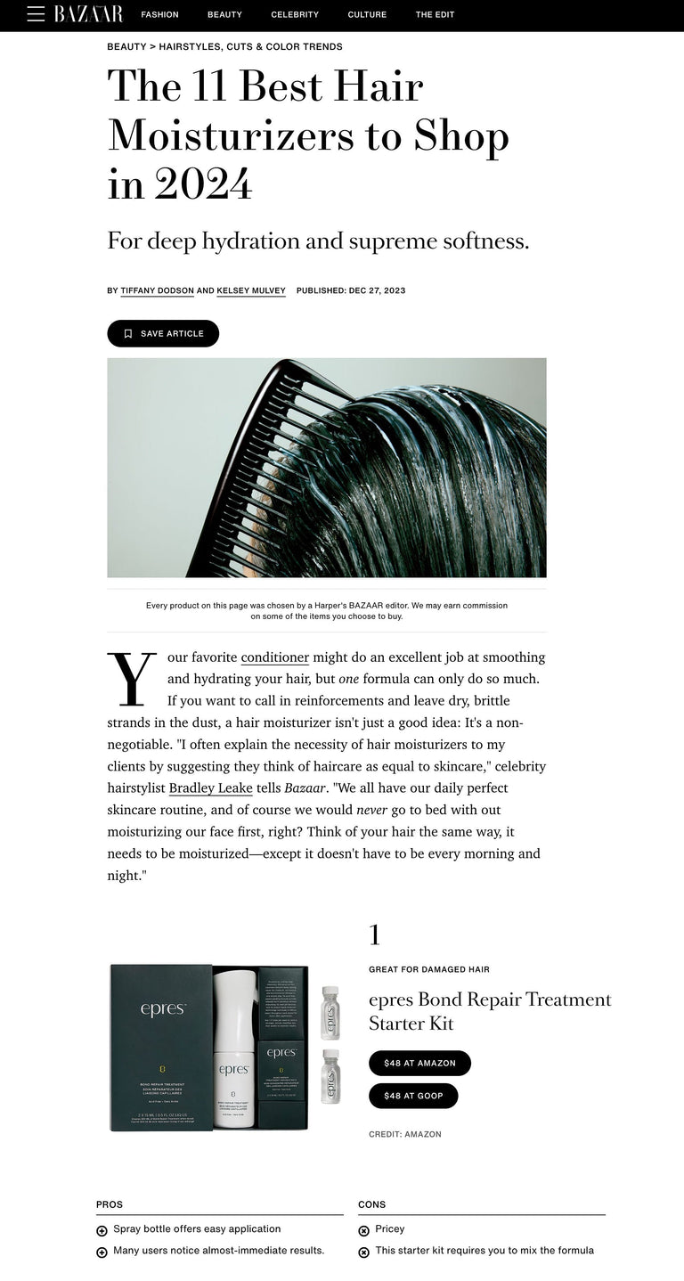 "The 11 Best Hair Moisturizers to Shop in 2024" by TIFFANY DODSON and KELSEY MULVEY